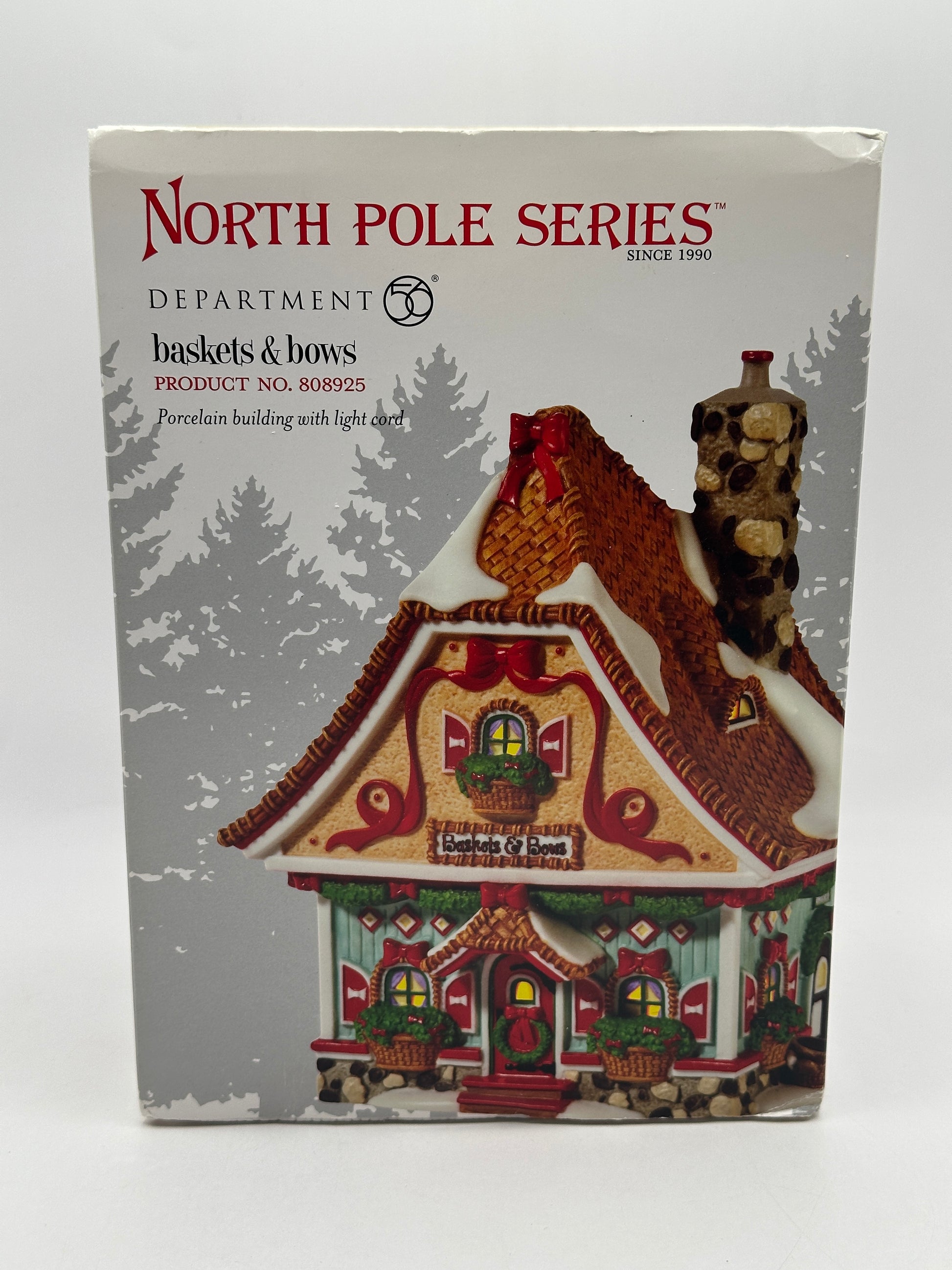 Step into the festive world of Santa’s gift-wrapping workshop with Baskets & Bows. This charming lighted cottage features cheerful holiday décor and elf-sized baskets brimming with bows and ribbons, where custom gift styling takes centre stage.
