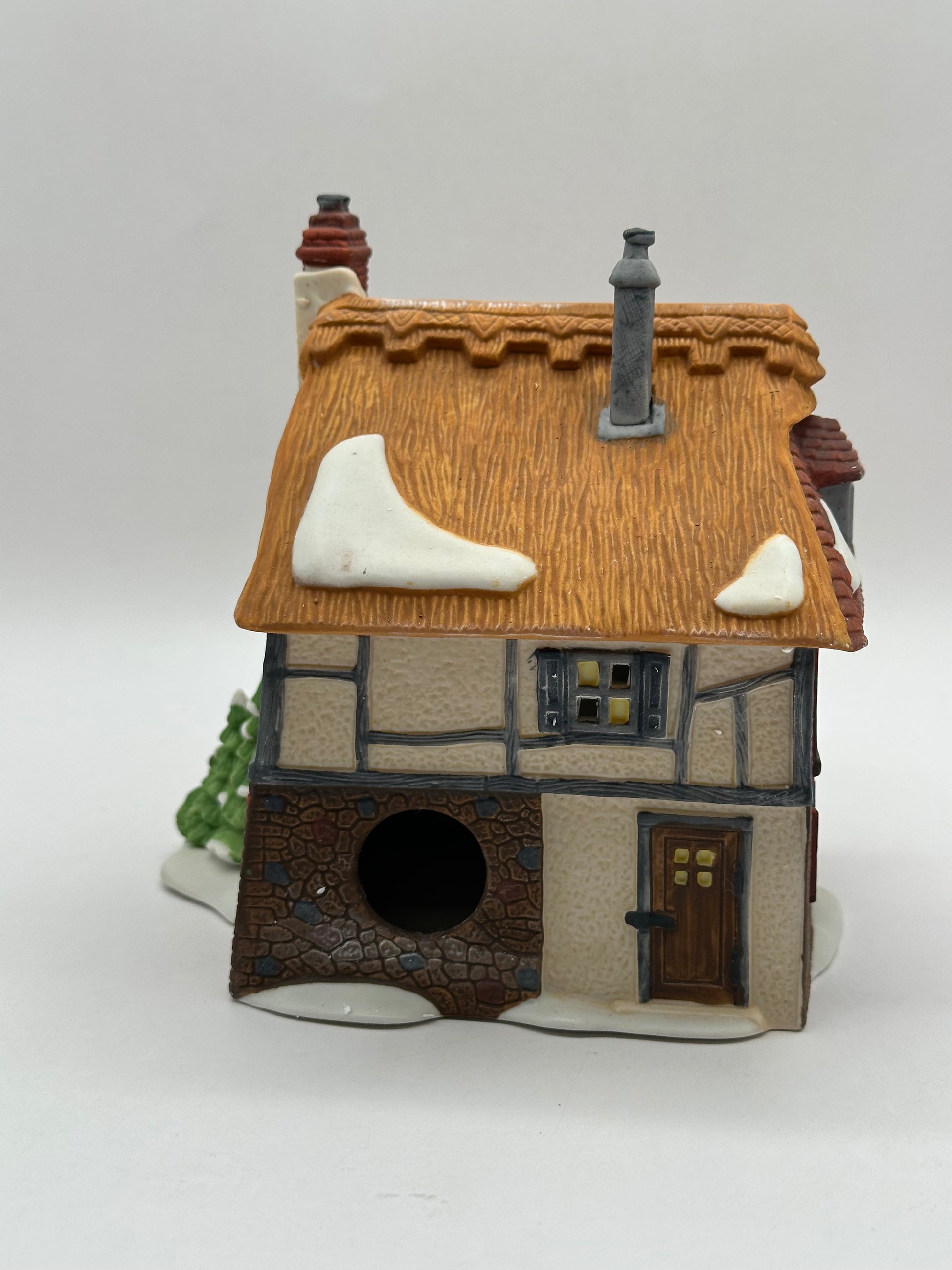 Betsy Trotwood’s Cottage is a quaint and charming home straight from the pages of Dickensian tales. Its cozy, thatched-roof design, detailed windows, and warm, inviting colours capture the spirit of a beloved literary setting. Perfect for a corner of your Dickens Village, it evokes the charm of a peaceful country dwelling, nestled among winding lanes or tucked near other storybook cottages.