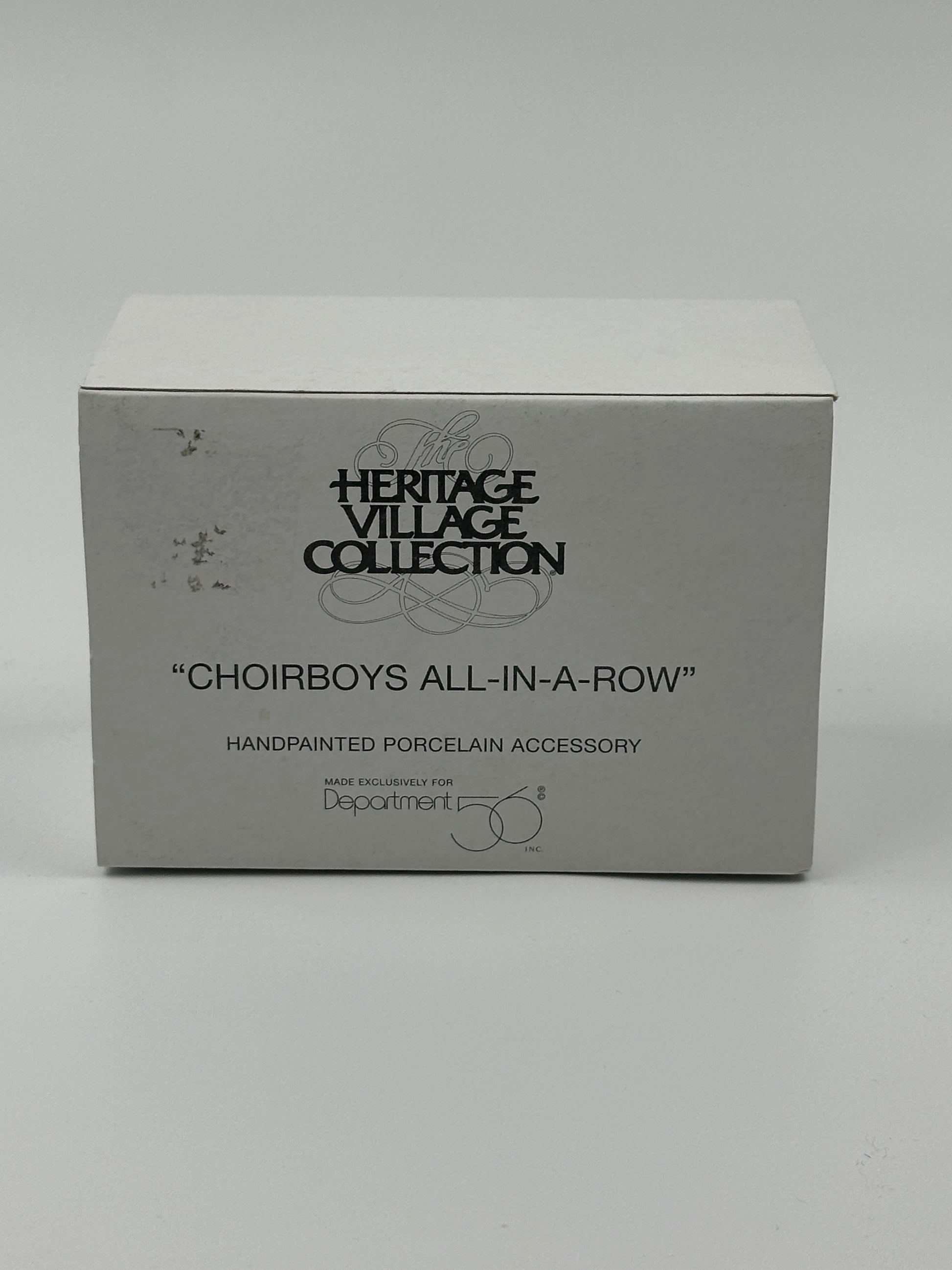 Add warmth and harmony to your holiday village with Choirboys-All-In-A-Row from Department 56. This accessory features a group of young choirboys standing together, bundled in traditional robes and singing their hearts out. With open songbooks in hand, these festive figures bring the joyful sounds of the season to life.