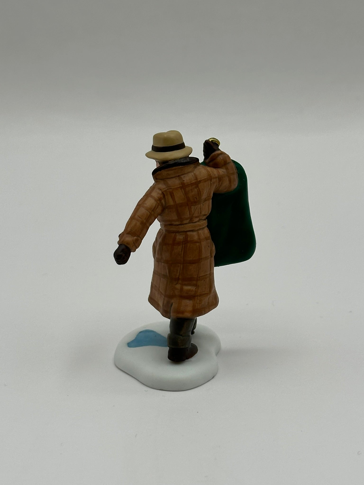 This stylish city shopper is bundled up in a chic winter coat and fashionable hat, confidently carrying a shopping bag labeled “Milan of Italy.” With its attention to detail and nod to upscale holiday shopping, this figure perfectly captures the elegance and hustle of city life during the festive season.