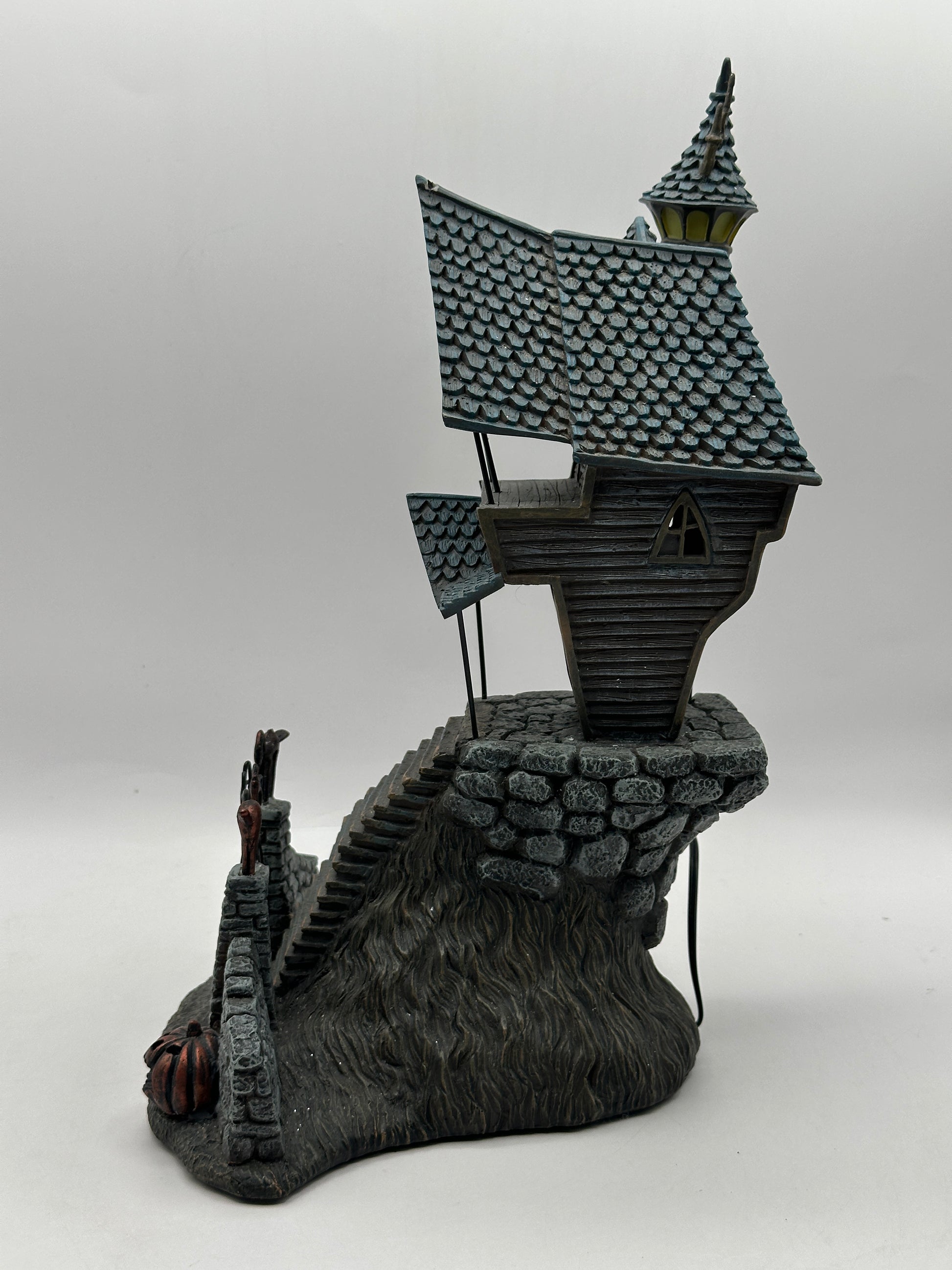 Step into the spooky world of Halloween Town with Jack Skellington’s House from The Nightmare Before Christmas Village by Department 56. This intricately detailed lighted building captures the towering, twisted home of the Pumpkin King, complete with its crooked rooflines, rickety steps, and eerie iron gates just as seen in Tim Burton’s iconic film.