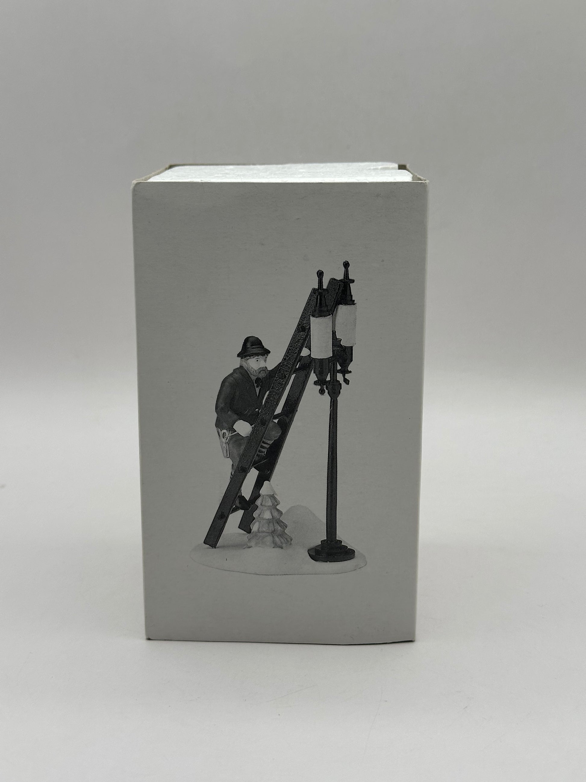 Lamplighter Accessory Set brings a classic Dickensian tradition to life, depicting the humble worker who strolls the streets at dusk to ignite the village’s gas lamps.