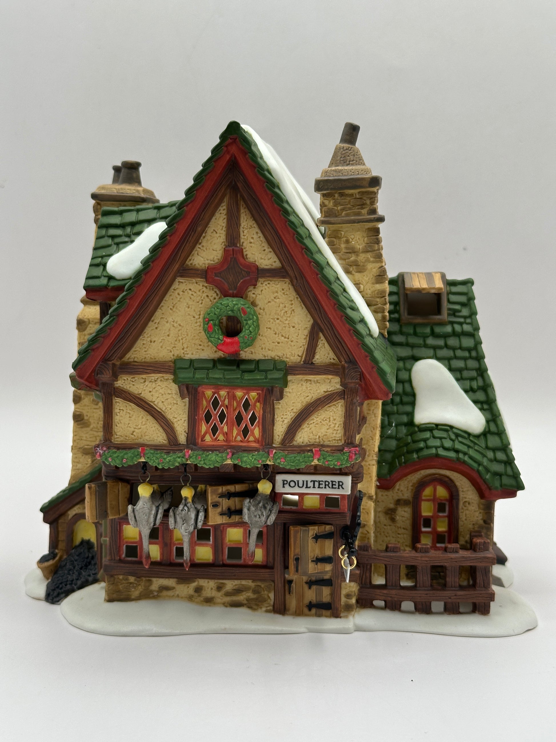 A classic piece from Department 56’s Dickens’ Village, the Leacock Poulterer is a charming Victorian-era shop where townsfolk pick up fresh poultry for their holiday meals. Often found along the village market square, it’s a favorite stop for families and local innkeepers preparing festive feasts.