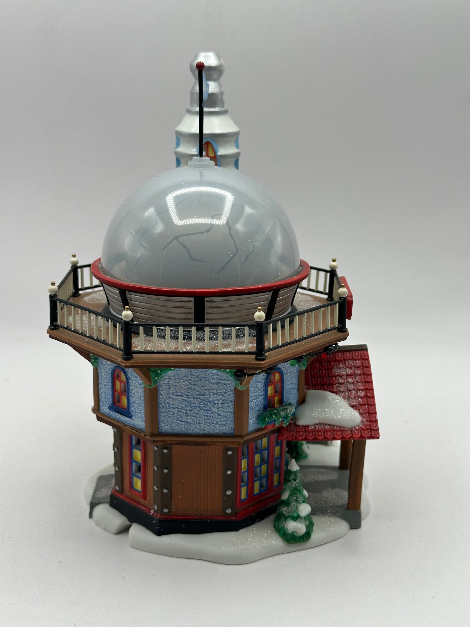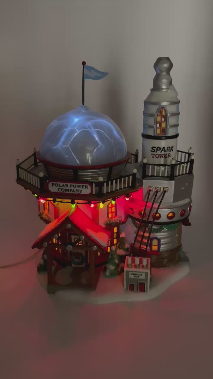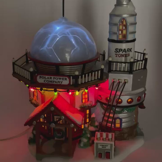 Bring a spark of magic with the Polar Power Company. Featuring festive details and a glowing façade, this factory building brings electric cheer to your elf-themed display. The dome crackles with lightning-like electricity, a clear sign that North Pole operations are in full swing thanks to the elves.