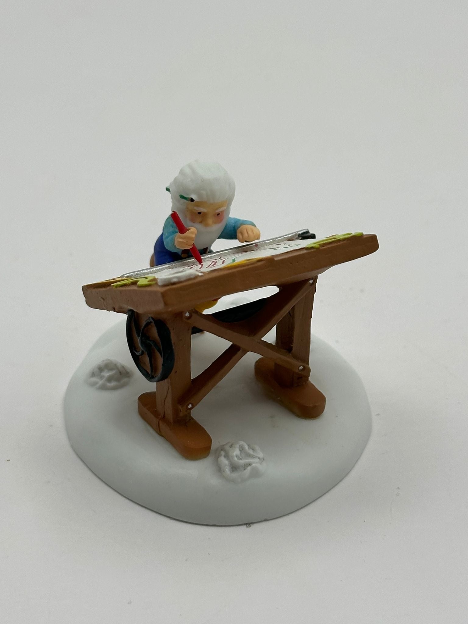 An inventive elf studies his blueprints for Santa’s New Sleigh - Design #56, sketching every curve and detail with care. With a sparkle in his eye and a dash of North Pole magic, he’s dreaming up Santa’s fastest and most brilliant sleigh yet.