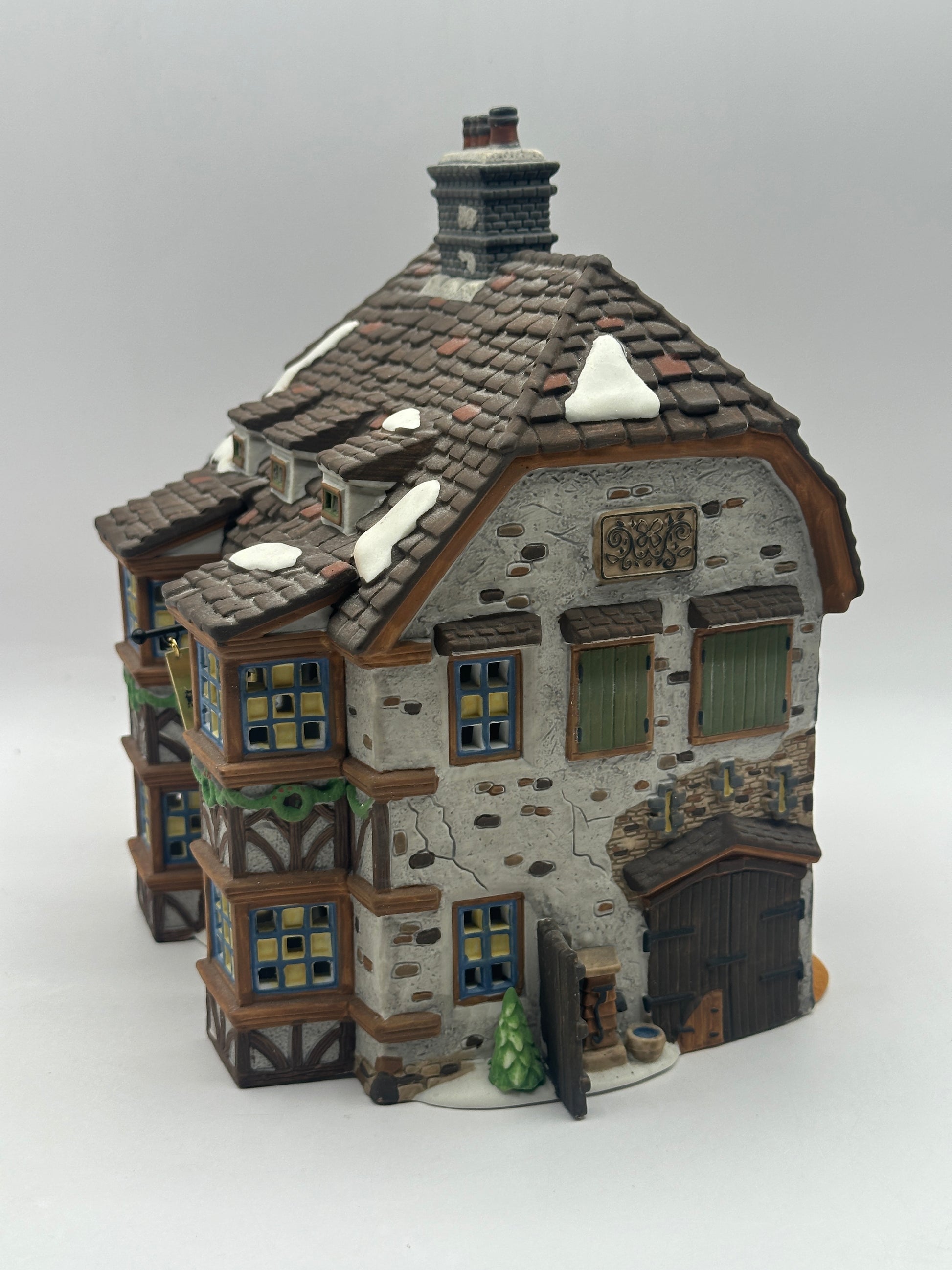 This cozy porcelain inn captures the charm of Victorian England with detailed stonework, timbered accents, and snow-dusted rooftops. A favorite stop for weary travelers and merry townsfolk, the Sir John Falstaff Inn brings warmth and character to any Dickens’ Village display.