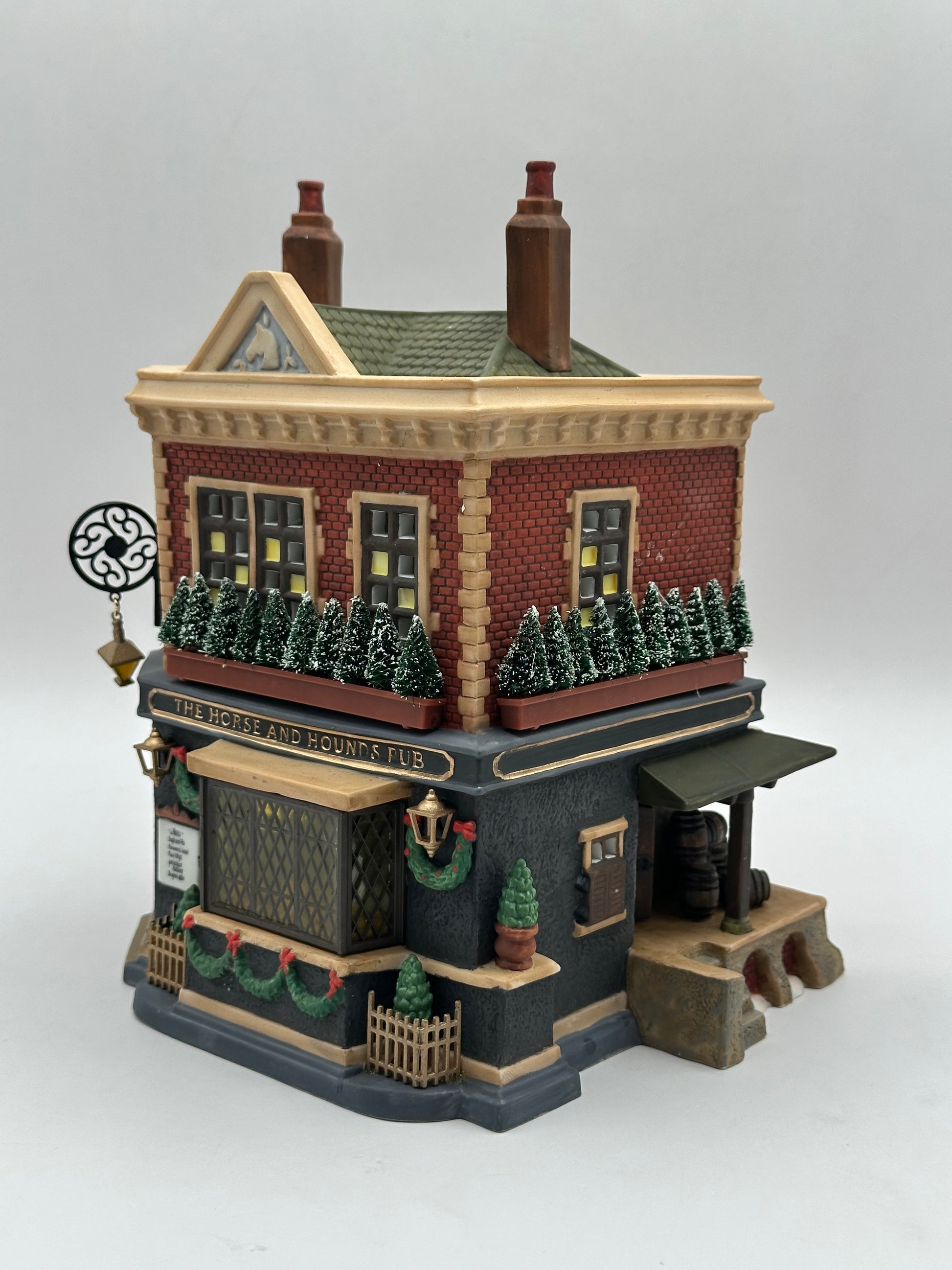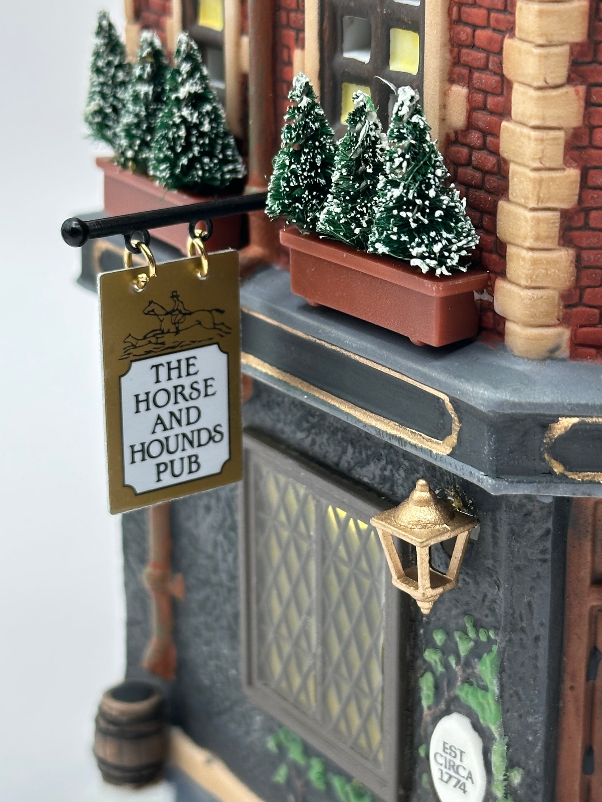 A welcoming village tavern full of rustic charm, The Horse and The Hound Pub invites locals and travellers alike to gather for food, drink, and lively conversation. Its cozy façade and traditional details make it a perfect centerpiece for any Dickens Village scene.