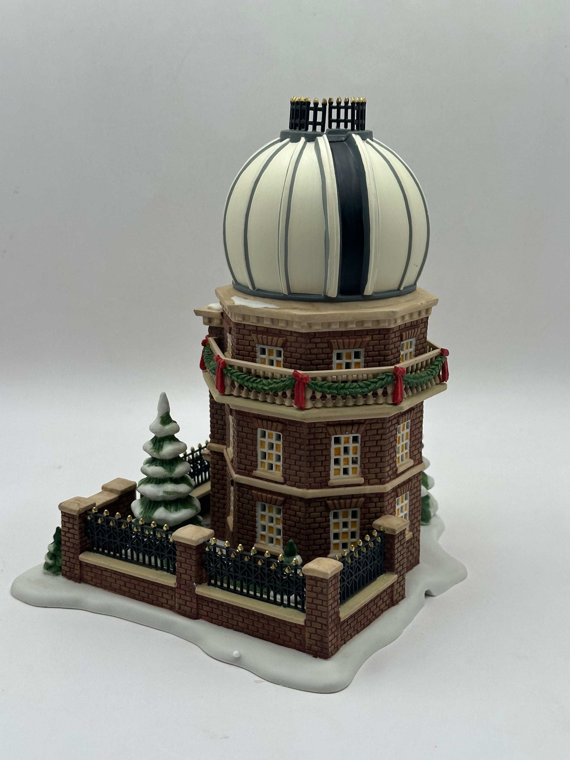 The Old Royal Observatory stands as a noble and historic feature within any Dickens Village display. With its towering structure, arched windows, and architectural character, this distinguished observatory evokes a sense of wonder and discovery born of centuries of stargazing and scholarly curiosity.