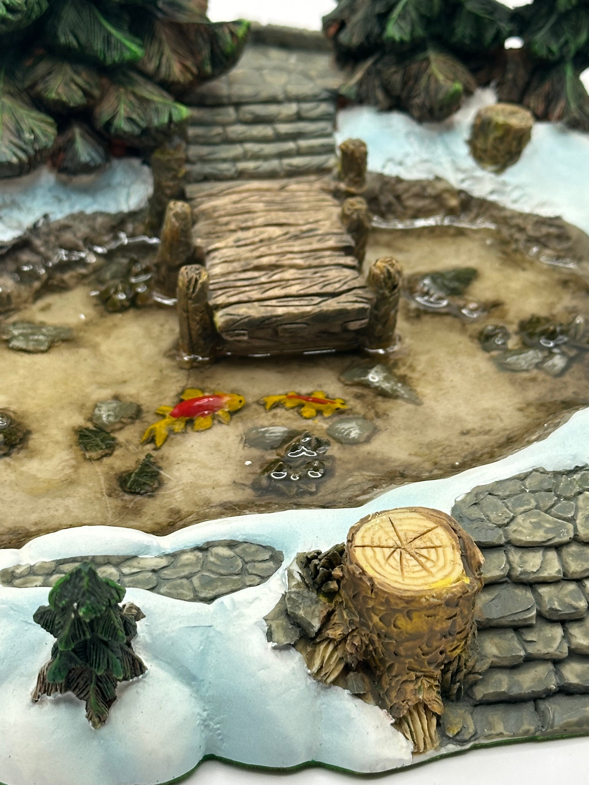 Pine Point Pond adds a peaceful touch of winter charm to any village display. This glassy, snow-kissed pond looks perfect for serene scene-setting, whether imagined as a spot for children to skate, neighbours to gather, or wildlife to pause for a drink beneath frosted pines. Its gentle curves and natural, woodland feel make it an easy piece to nestle between cottages, beside a forest edge, or along a village path.