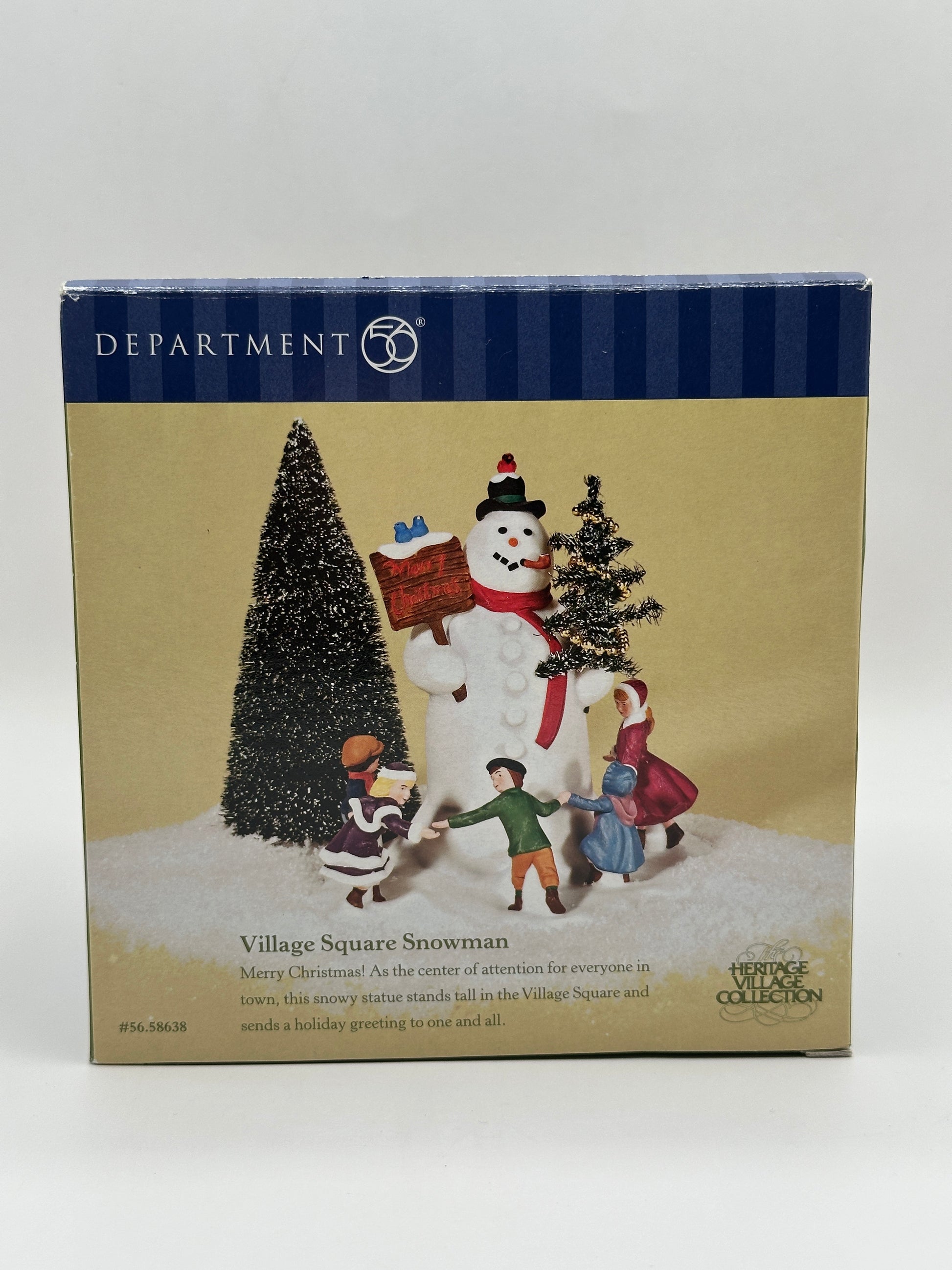 Celebrate the joy of the season with the Village Square Snowman, featuring cheerful children dancing around a festive snowman holding a 'Merry Christmas' sign, a heartwarming addition to any holiday village.