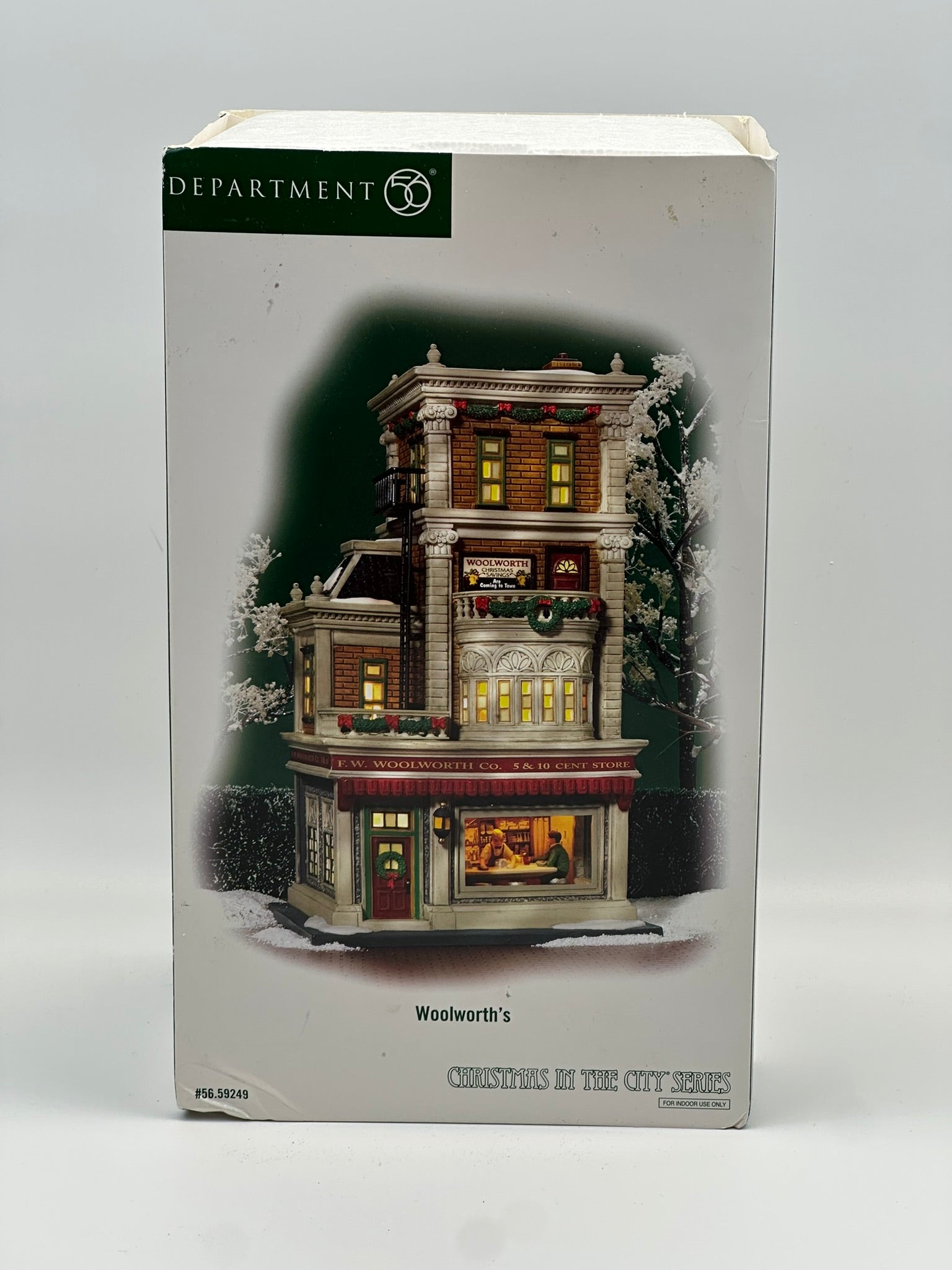 Step back in time with this detailed replica of one of America’s most iconic retail landmarks. Woolworth’s, the original five-and-dime store, comes alive in this festive Department 56 piece, featuring classic architectural details, holiday wreaths, and a charming peek into the store’s vintage lunch counter window.