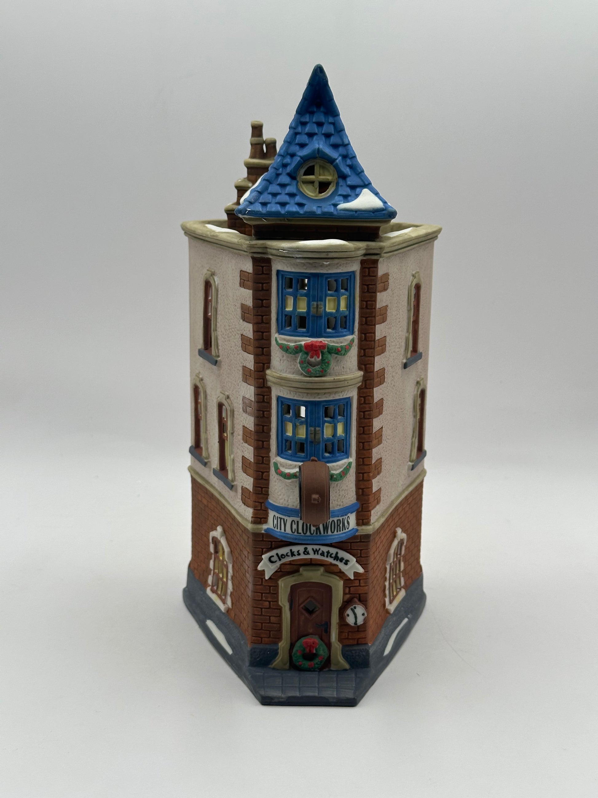 A timeless addition to your village, the City Clockworks from the Christmas in the City series features a stately brick design with detailed windows, festive wreaths, and classic clockmaker signage. With its rooftop chimneys and vintage-style exterior clocks, this charming piece adds old-world craftsmanship and character to your holiday display.