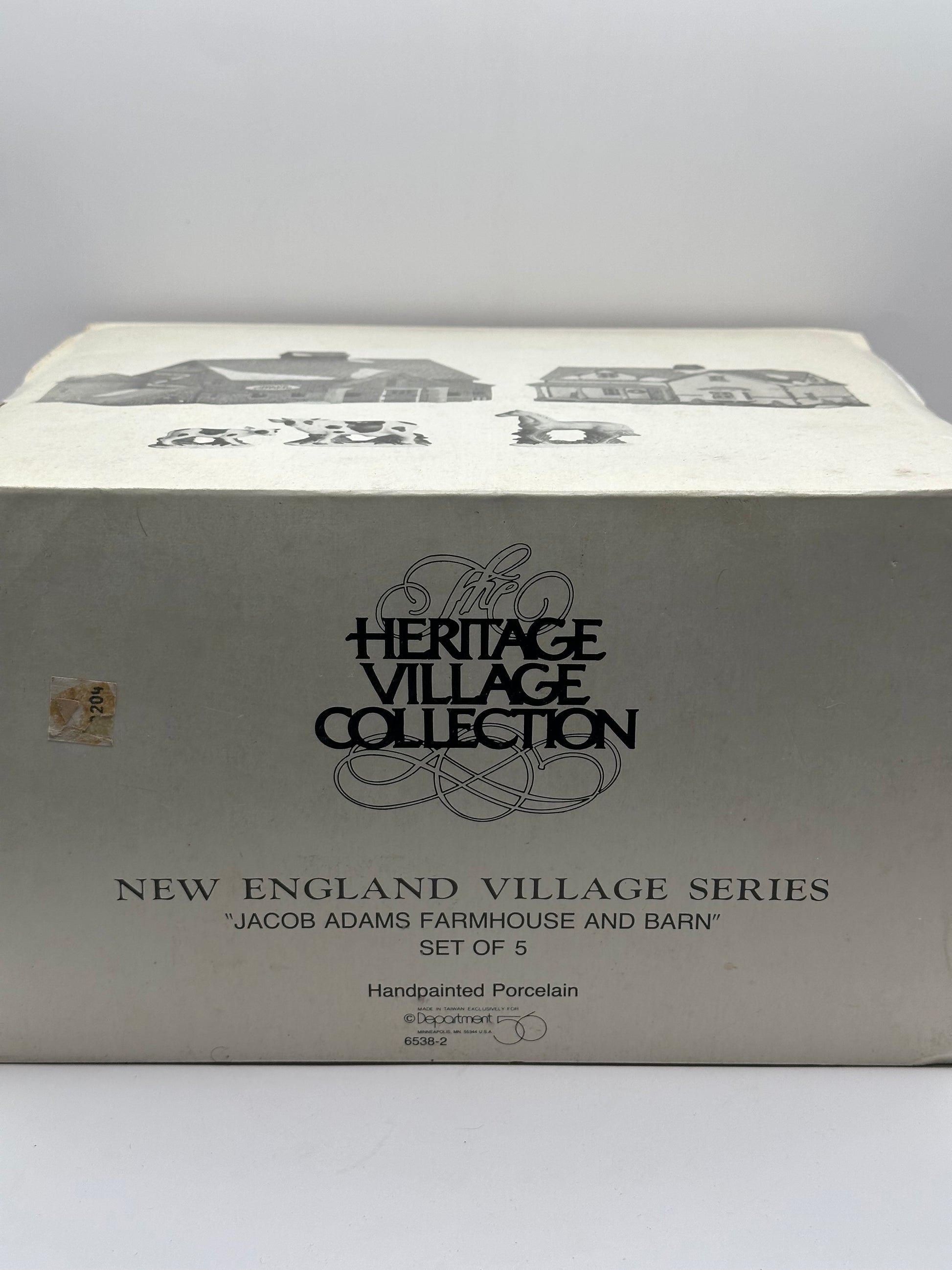 Dept 56 New England Village Jacob Adams Farmhouse and Barn (Set of 5)