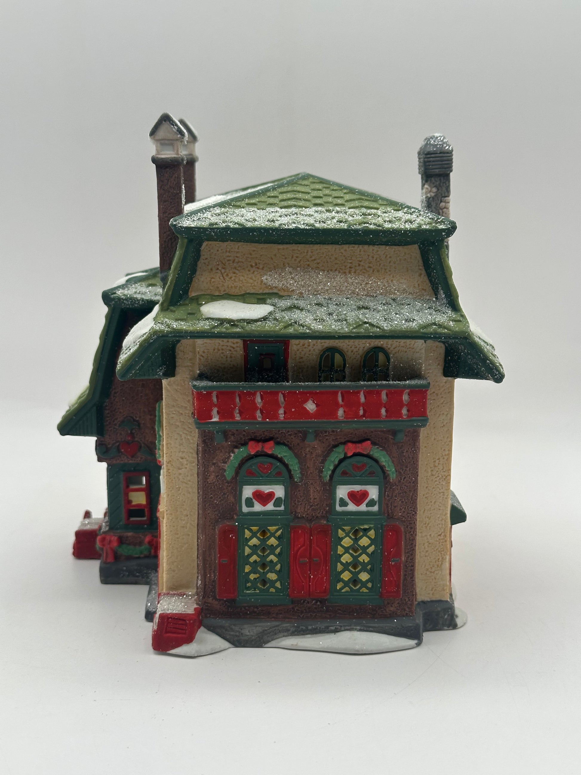 Welcome to Elfie’s Sleds & Skates, a favourite stop in the North Pole Village where busy elves rent sleds, sharpen skates, and enjoy winter fun. This charming holiday shop adds whimsical detail and festive spirit to any Christmas village display.