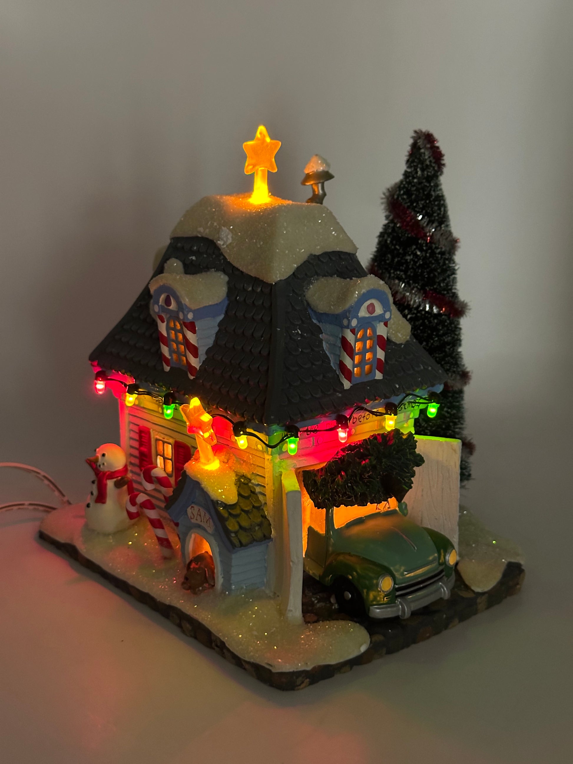 Good condition. The snow on the house has yellowing from age. Comes with the original box.